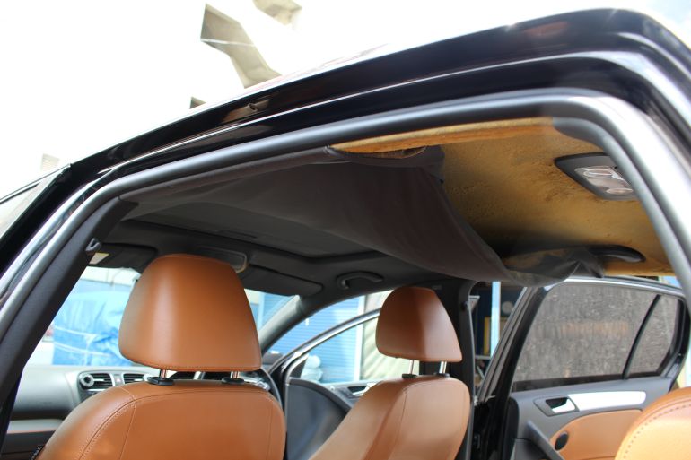 今回はサンルーフ部分は張り替えなしとのことでしたが指で触るとサンルーフ全体が浮いてましたので急きょ外して張り替えをしました。生地色は黒ですが黄味の入ったグレーに近い黒 見本帳には墨くろで出ています。 天井張り替えはペニーレーンアールエスジーまでご用命ください。連絡携帯:090-7771-8121(フカガワ)まで気軽にご相談ください。