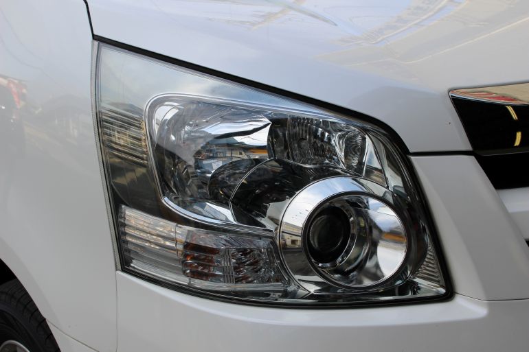 施工前↓ 実際のヘッドライトは黄色くくすんだ色です。