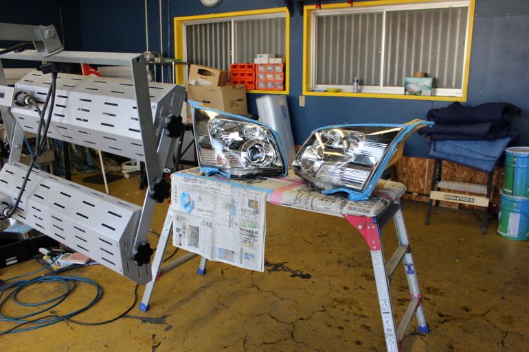 ヘッドライトを外してのクリア修復塗装もできます。